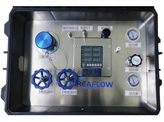 便携式LNG取样器是针对LNG特点而开发的专用产品,主要应用于第三方检测机构从LNG加液机进行取样,产品体积小轻便易携带,温度和压力可调,可靠性高。液化天然气从加液机通过加液枪组件与移动式LNG取样器中快接接头连接(加液口),随后经过深冷截止阀,通过截止阀实现取样系统的开启与关闭。经过深冷截止阀后进入止回阀,进入电加热调压汽化器,经过加热、加压后进入缓冲罐,缓冲罐既可均匀混合样气也可起到稳定系统流量的作用。经过缓冲罐后与单向阀连接,单向阀的作用是防止后续系统出现故障,其他介质进入系统。继单向阀之后系统分为安全阀管路和软管进样管路。安全阀管路是防止调压阀故障时可以及时泄放系统压力以保护系统安全。软管进样管路则是通过快速接头与取样钢瓶连接,完成天然气的取样工作。